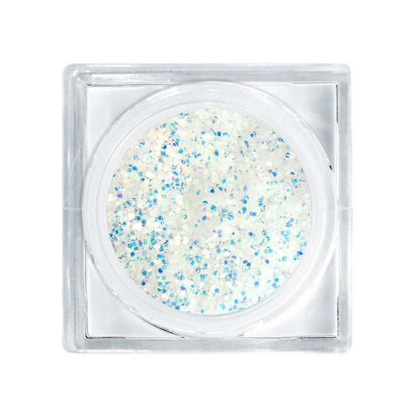Icey, clear white glitter makeup shimmer. Turn off the lights...and it glows. Vanilla Ice: Ice, Ice, Baby!